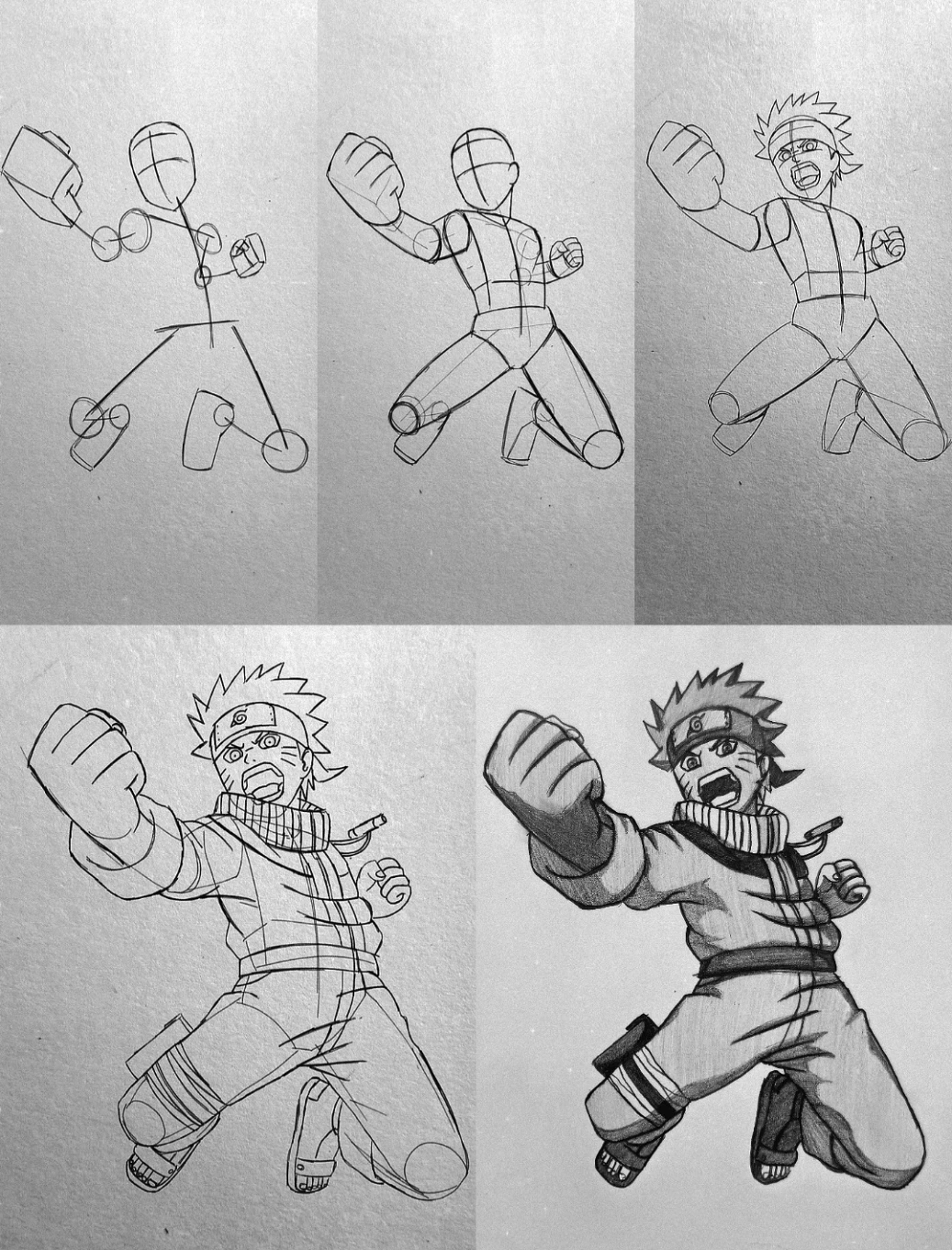 Following these steps results in a dynamic, high-impact drawing of Naruto Uzumaki in mid-action.